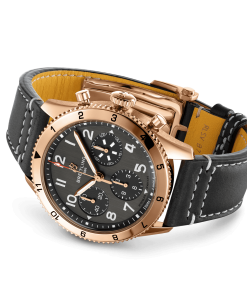 Breitling AVI 1953 Edition. Black dial 41 mm 18k Red Gold case. Plexiglas crystal. Breitling B09 (Manufacture) calibre, Mechanical hand-wound, 70 hrs power reserve, 34 jewels. Calfskin Leather strap Tang-type clasp. Water resistance 100 m (330 ft).