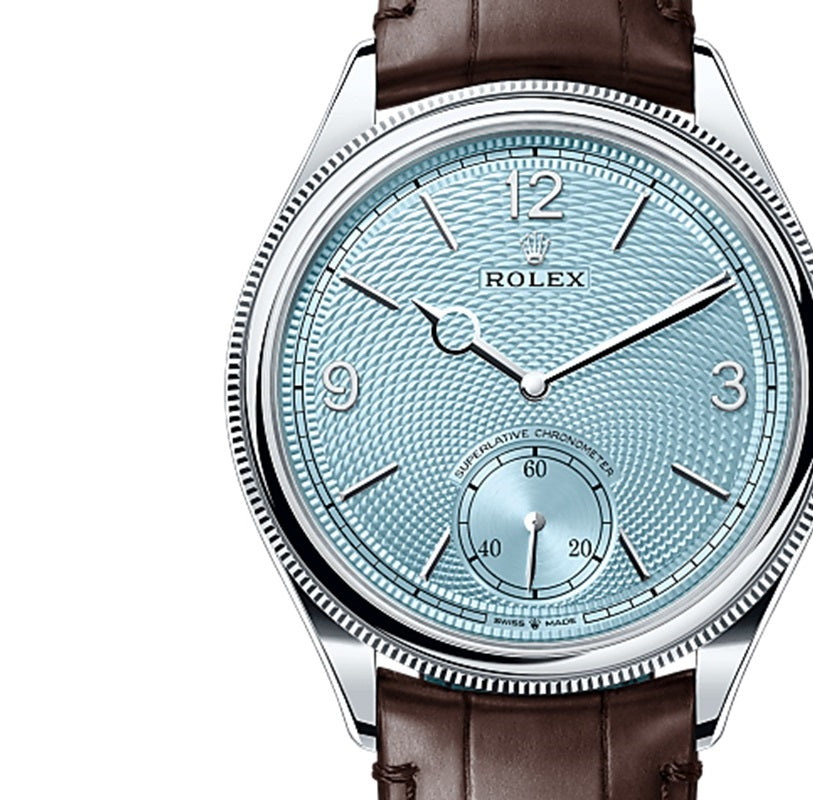 Introducing the Rolex 1908, a masterpiece that embodies the pinnacle of luxury and craftsmanship. This exquisite timepiece features a 39mm Platinum case with a polished bezel, exuding timeless elegance. The Ice blue dial is adorned with black hour markers and hands, providing a striking contrast for enhanced readability. Powered by the Rolex Caliber 7140, it offers a remarkable power reserve of approximately 66 hours and is water-resistant up to 50 meters. The watch is complemented by a sophisticated black alligator leather strap with an 18K white gold folding Crownclasp. Offered in unworn condition, this exceptional watch comes as a full set with the original Rolex box, booklets, and a Rolex warranty card dated 2025. Secure this luxurious timepiece today and experience the epitome of Swiss horological excellence. Perfect for any collection, the Rolex 1908 blends heritage with modern sophistication, making it an ideal companion for any occasion.